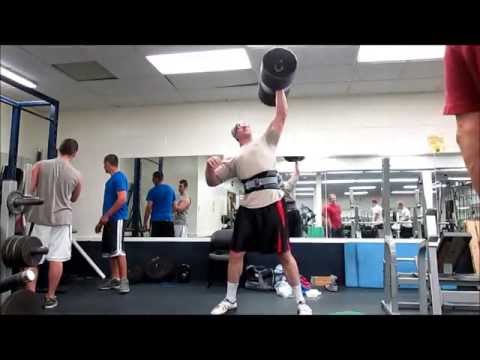 Comments: I wasn't sure how this would go. Joints felt achy in my legs like I wasn't getting much out of them. Accelerated the 5/3/1 schema to have this be quasi-max test day to see where I'm at for the Pro/Am. The goal weight was quite easy. Had tons of issues with my right hand and only managed 10lbs more than the goal weight. Still my best on this implement. I was able to do considerably more with my left and did 30lbs more than the goal weight, which is slightly over the contest weight. Very happy with this result and it certainly makes it look like what I'm doing is working. For the secondary lift of the session, I did just the empty dumbbell for sets of 8 with only 1 clean. Shoulders took a beating on these and it was equally difficult for both sides. I figured this was the closest I could get to doing "rack presses" like I would for say the axle or log. Lot's of time for the shoulders and upper body to be under tension. Beat but satisfied.