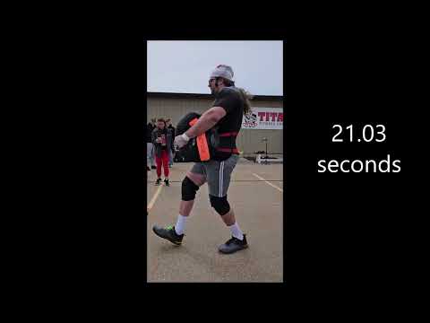 The fourth event involved sandbags as well. Sandbag carry can be contested a few ways. This would be carrying 300lbs/136kgs down 60’/18.3m and back in 60 seconds time limit. Drops allowed but I know if I dropped, that I’d likely be done as pick up is the hardest part for me with most things in this sport. I can hold and carry things for a long time. Not necessarily a fast time. Just got to get used to it and try to move fast. I tend to move about the same speed unfortunately. I knew that my posterior chain was likely beat seeing how sandbag to shoulder went after deadlift. There is always asterisk next to weights and distances in strongman. I brought my measure wheel just in case after I saw that one of the events was changing up the week prior due to location change. I like to have numbers for what I did to accurately review performances. In this instance, the sandbag was 310lbs/141kgs and the distance 55’/16.75m down and back. My right hip flexor was a little tight but not as bad as it has been. Trying to move a bit and get a feel for things. I attempted to pick up the contest bag after doing lighter runs with 200lbs/91kgs and 250lbs/113kgs and I wasn’t successful in lapping it. I hadn’t given it 100% (it’s warming up) but it did have me starting to stress things. I really don’t like this 310lbs/141kgs sandbag today. I knew I could do it but I’d really need to hunker down when it was time to go and commit and grind out the lift. I think I was surprised with just how fatigued my posterior chain was, considering the work put in on it this short prep. Guy in first went pretty quick with it. My pick up was slow but successful. I was not vibing with the texture or tactile feel of this bag at all. Focusing on my breathing and trying to move fast. Tried to pick up speed on the return trip after kind of reverting to the short steps to make the turn and go. Finished in 21.03 seconds, which is about what I was hitting in training with the 300lbs/136kgs bag with slightly longer distance but a lot less fatigue from preceding stuff. Left wrist was sore immediately afterwards but that abated. I should be ok for the last event to finish out the day. About 3.5 seconds slower than first but 12.5 seconds faster than third for second place.